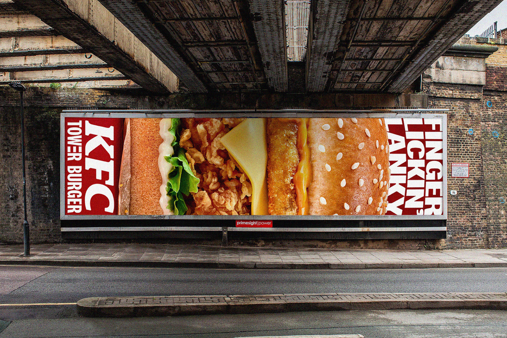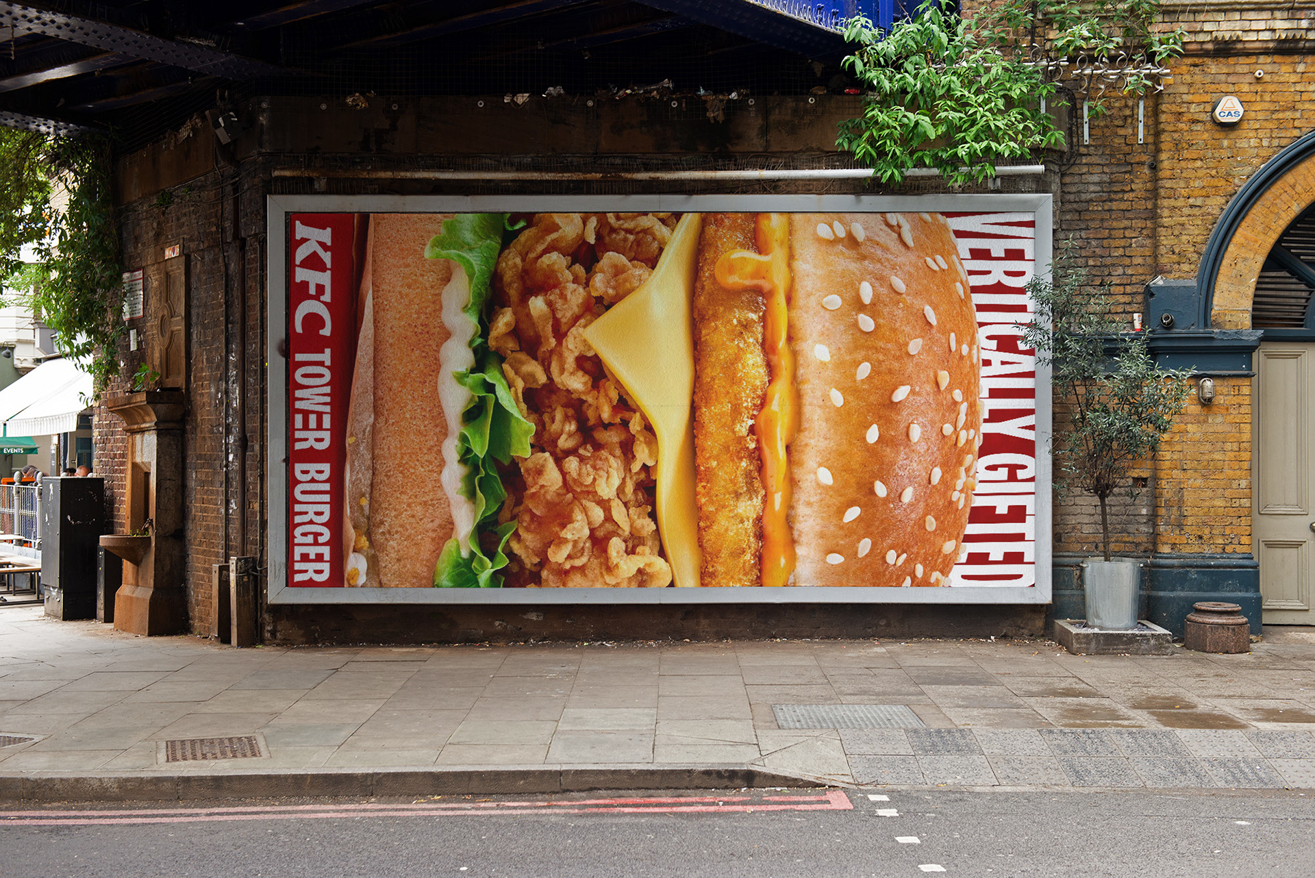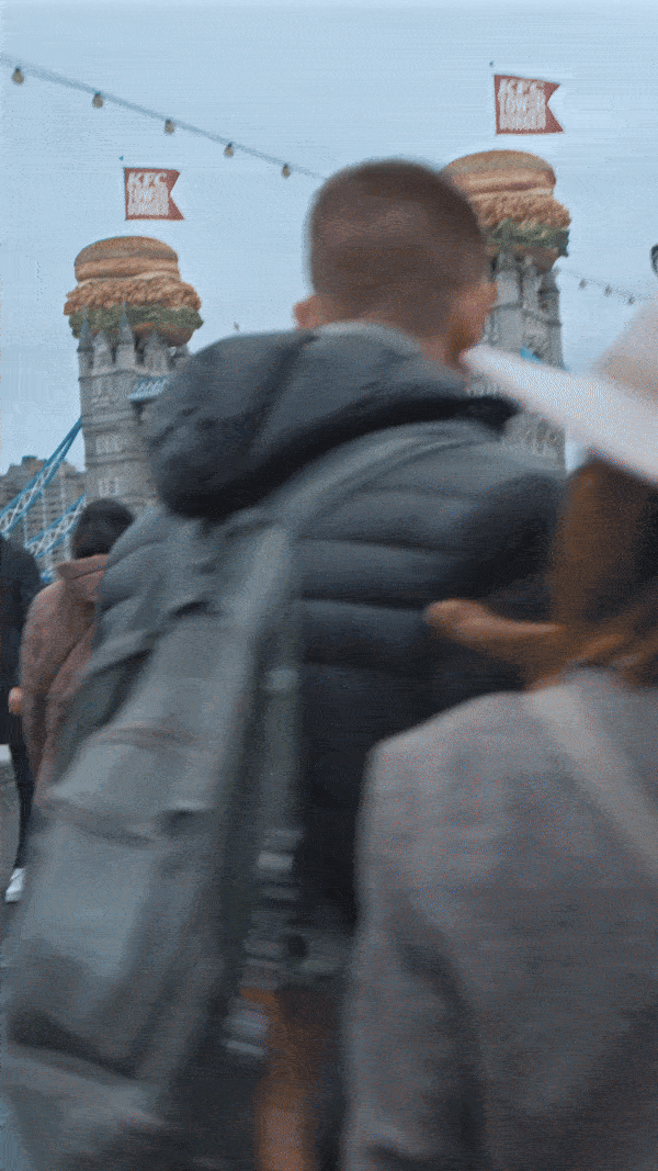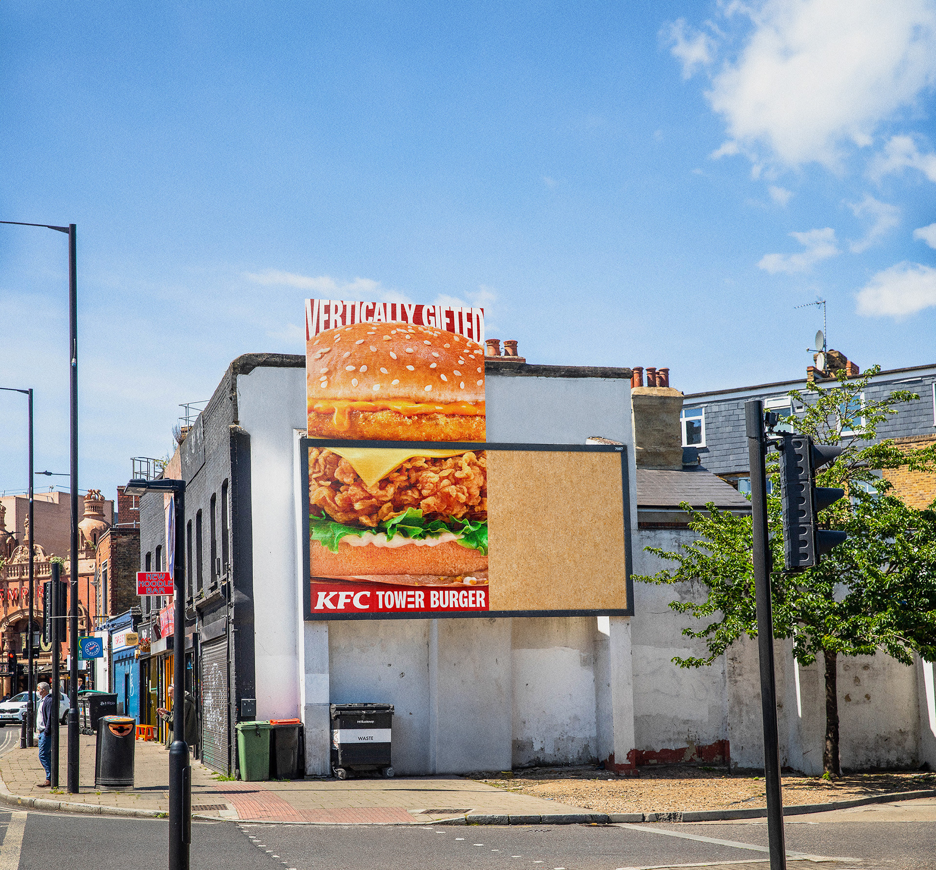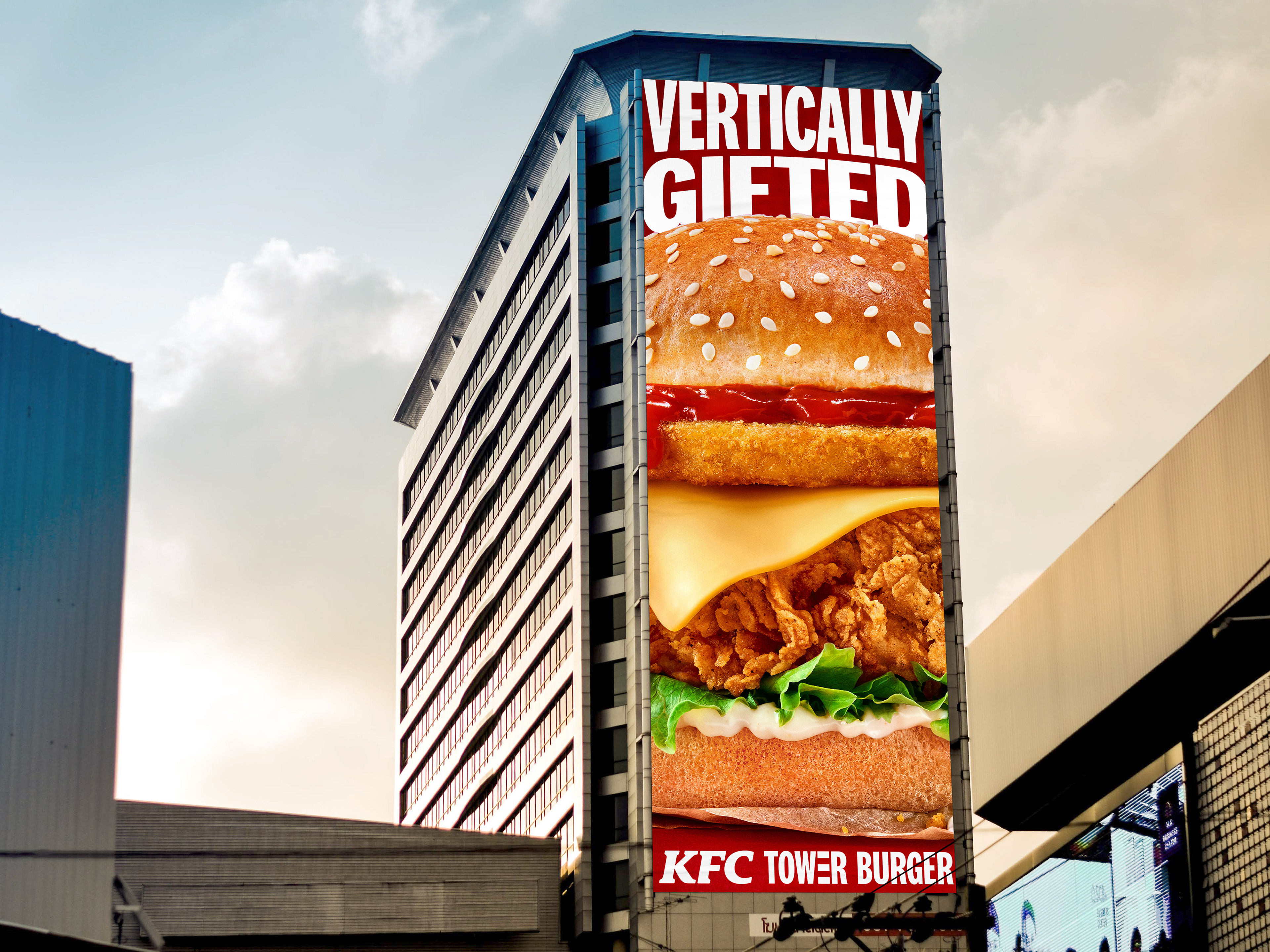 The KFC Tower Burger is a chicken fillet with a hash brown on top, making it far too tall for most media placements. So for this campaign, we had to adapt.